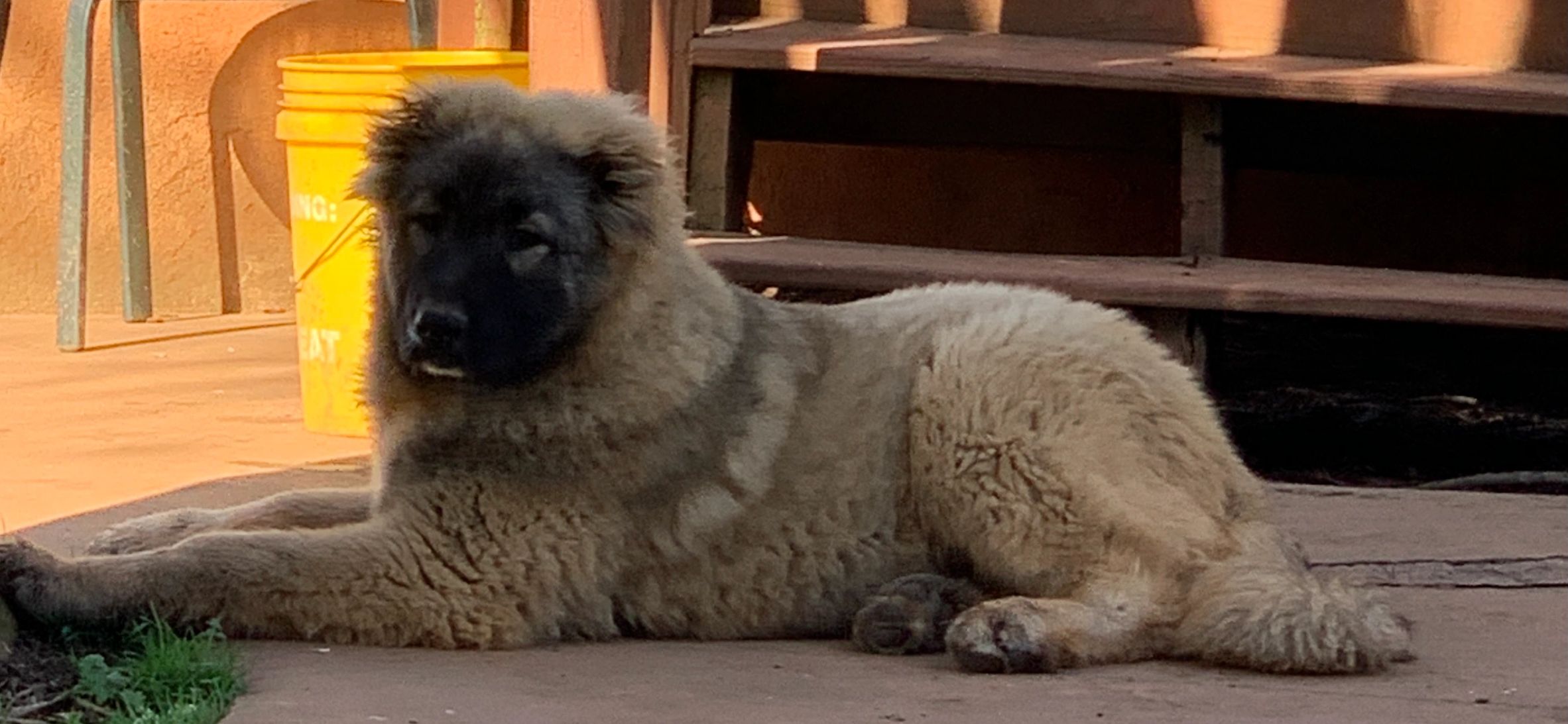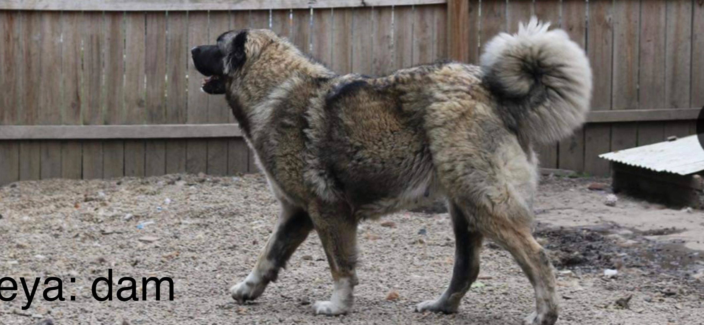 Kasha is our first Caucasian Ovcharka, Her sire, Zever, is Hungarian. Her dam , Ivana, is from Russian. She was the only female and runt of her litter. She is very laid back and mellow in general. Kasha is a wonderful mother .